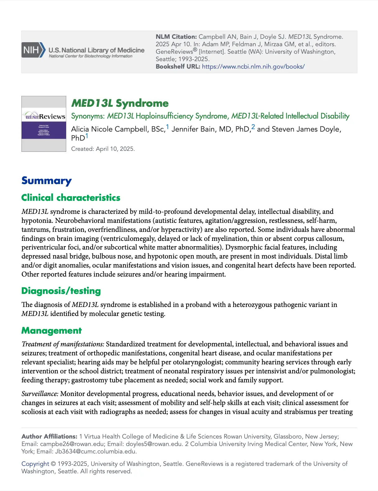 MED13L Syndrome Synonyms: MED13L Haploinsufficiency Syndrome, MED13L-Related Intellectual Disability